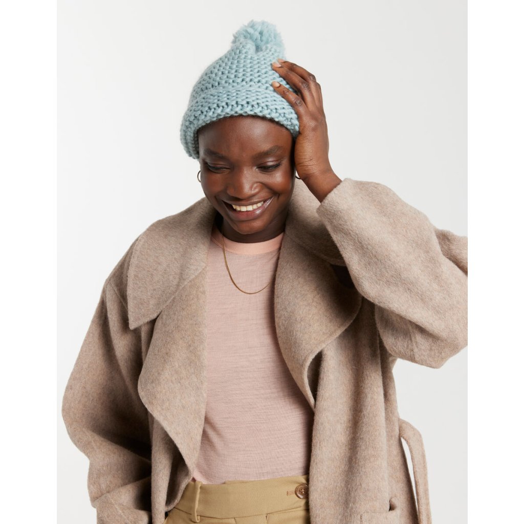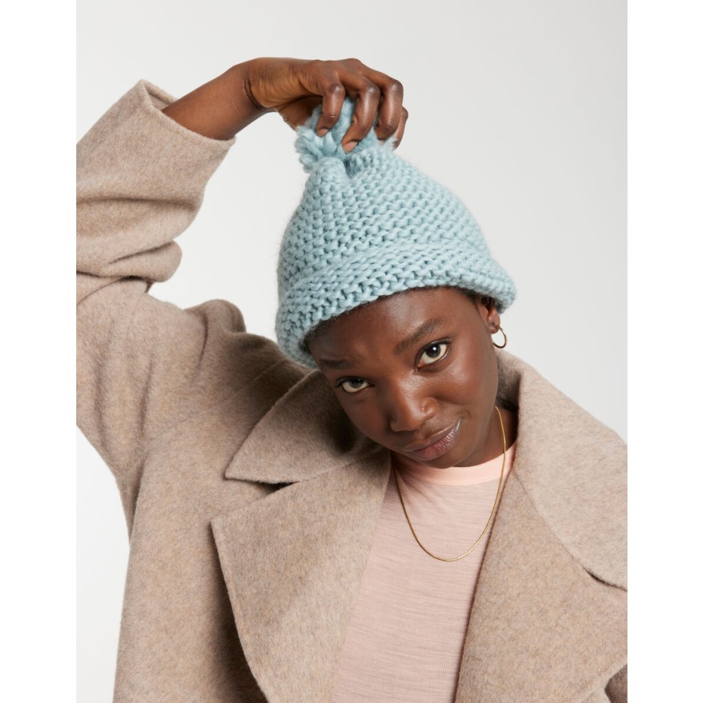 Čepice Big Ideas Hat se plete ze superměkké peruánské vlny Lil' Crazy Sexy Wool od ikonické značky Wool And The Gang. Tato příze je o něco tenčí "sestřičkou" silné vlny Crazy Sexy Wool, a tak se kromě teplých svetrů hodí i na celoroční pletení.